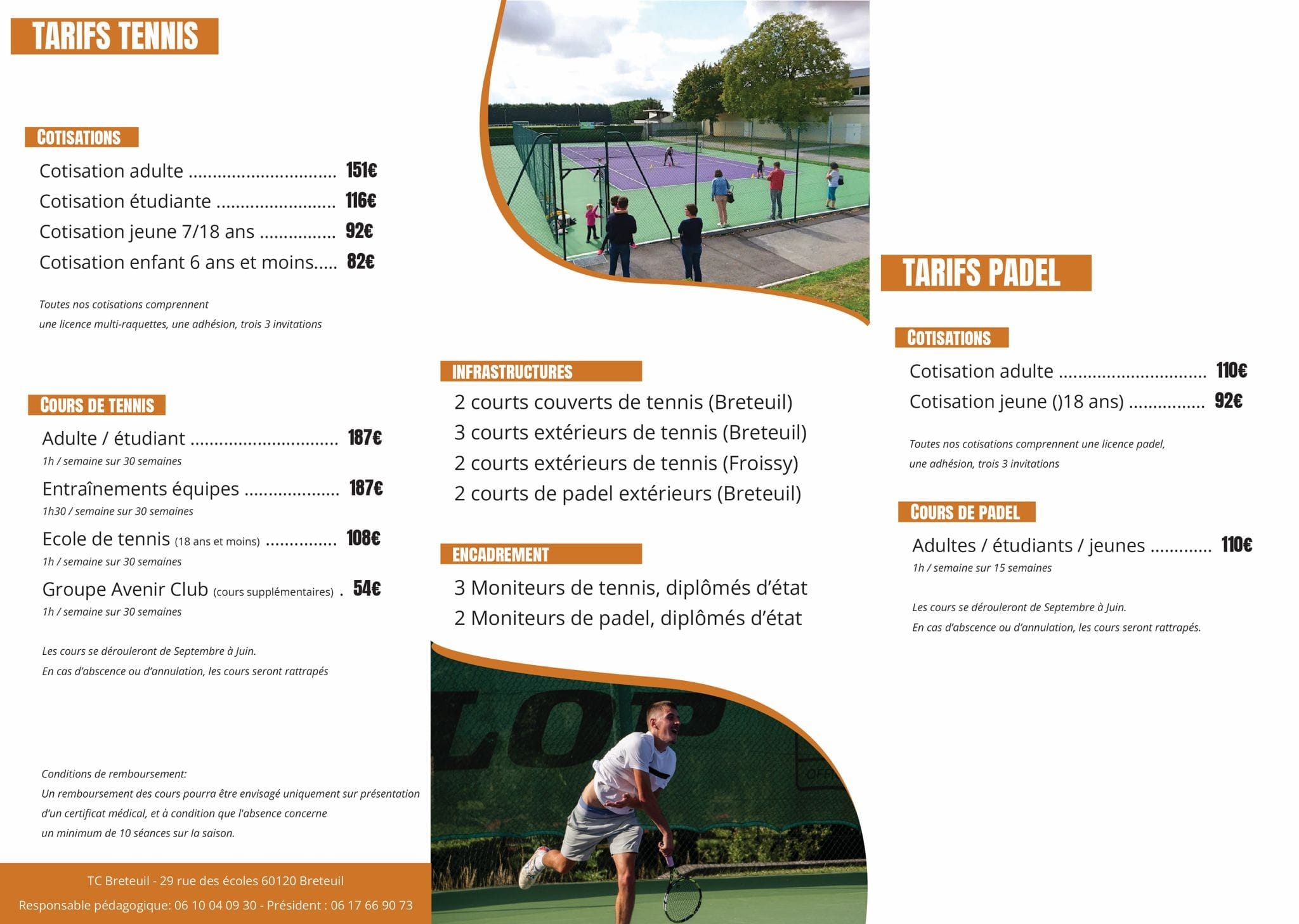 Du 1er septembre au 30 août de l'année suivante, la cotisation vous donne accès à tous les terrains durant toute l'année. Celle-ci est composée d'une adhésion et d'une licence.Vous bénéficiez de 3 invitations gratuites pour accueillir des personnes non-adhérentes au club. Au delà, chaque invité devra payer 5 €.Cette cotisation ne comprend pas le montant d'éventuels cours que vous pourriez prendre (voir plus bas)